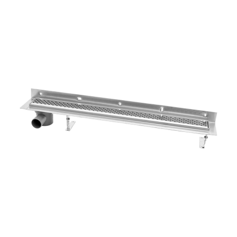 Zuhanyfolyó rozsdamentes acélból, 75 cm rostélyszélességgel. Minimális épületmagasság 7,5 cm. Rács négyzet alakú dekorációban. Hulladék átmérő a csatlakozáshoz DN 50. Az ereszcsatorna a karimának köszönhetően közvetlenül a falra szerelhető. A szifont és a lábakat a csomag tartalmazza. Fényes kivitelben.
