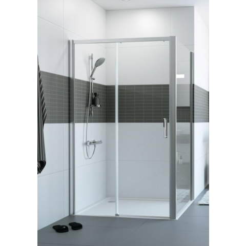 Zuhanyajtó tálca nélkül fényes krómban, a felület átlátszó üvegből készült dekor nélküli. A Hüppe Anti-Plaque technológiával - a gyártás során alkalmazott felületkezeléssel, amely megkönnyíti a tisztítást, és lehetővé teszi, hogy a víz apró cseppek formájában folyjon le. Tolóajtó rendszer. bal oldali tájolás.