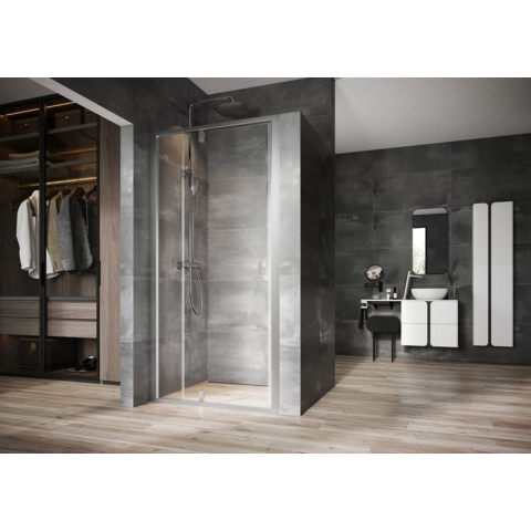 Zuhanyajtó tálca nélkül matt króm színben, a felület átlátszó üvegből készült dekor nélküli. A RAVAK AntiCalc® technológiának köszönhetően az üveg víztaszító tulajdonságokkal rendelkezik, ami azt jelenti, hogy az üveg felülete víztaszítóvá válik. Elforgatható nyitórendszer. Bal és jobb oldali tájolás is.