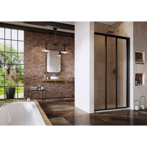 Zuhanyajtó tálca nélkül fekete színben, a felület átlátszó üvegből készült dekor nélküli. A RAVAK AntiCalc® technológiának köszönhetően az üveg víztaszító tulajdonságokkal rendelkezik, ami azt jelenti, hogy az üveg felülete víztaszítóvá válik. Tolóajtó rendszer. Bal és jobb oldali tájolás is.