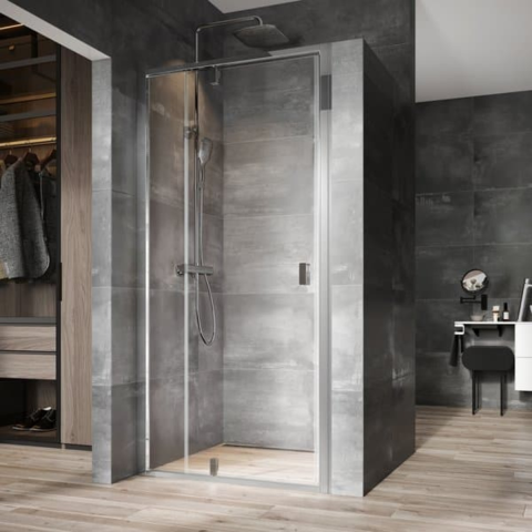 Zuhanyajtó tálca nélkül fényes krómban, a felület átlátszó üvegből készült dekor nélküli. A RAVAK AntiCalc® technológiának köszönhetően az üveg víztaszító tulajdonságokkal rendelkezik, ami azt jelenti, hogy az üveg felülete víztaszítóvá válik. Elforgatható nyitórendszer. Bal és jobb oldali tájolás is.