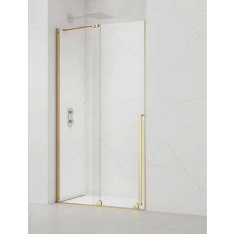 Zuhanyajtó nikkelprofillal, aranyfényű kivitelben, a kitöltés díszítés nélküli átlátszó üvegből készült. A termék Easy Clean felületkezeléssel rendelkezik, amely megkönnyíti a tisztítást és minimalizálja a vízkőlerakódást. Csúsztatható nyitású rendszer. Megjelölés - bal és jobb tájolás.