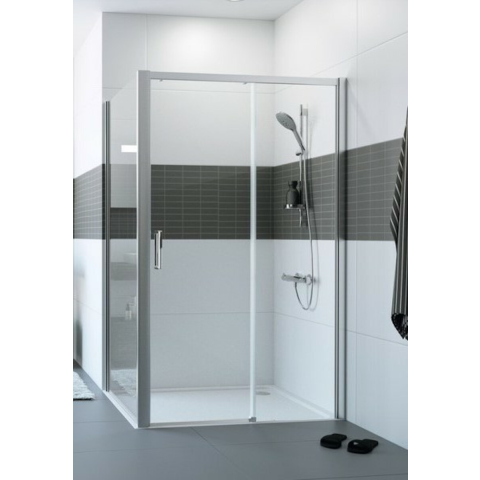 Zuhanyajtó tálca nélkül fényes krómban, a felület átlátszó üvegből készült dekor nélküli. A Hüppe Anti-Plaque technológiával - a gyártás során alkalmazott felületkezeléssel, amely megkönnyíti a tisztítást, és lehetővé teszi, hogy a víz apró cseppek formájában folyjon le. Csúszó nyitórendszer. Jobb oldali tájolás.