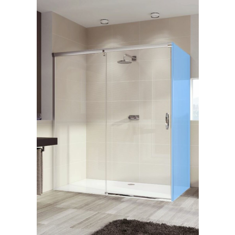 Zuhanyajtó tálca nélkül fényes krómban, a felület átlátszó üvegből készült dekor nélküli. A Hüppe Anti-Plaque technológiával - a gyártás során alkalmazott felületkezeléssel, amely megkönnyíti a tisztítást, és lehetővé teszi, hogy a víz apró cseppek formájában folyjon le. Elforgatható nyitórendszer. Bal oldali tájolás.
