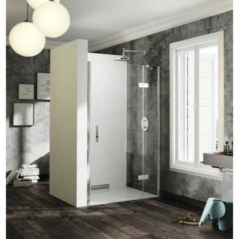Zuhanyajtó tálca nélkül fényes krómban, a felület átlátszó üvegből készült dekor nélküli. A Hüppe Anti-Plaque technológiával - a gyártás során alkalmazott felületkezeléssel, amely megkönnyíti a tisztítást, és lehetővé teszi, hogy a víz apró cseppek formájában folyjon le. Elforgatható nyitórendszer. Jobb oldali tájolás.