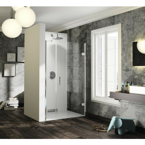 Zuhanyajtó tálca nélkül fényes krómban, a felület átlátszó üvegből készült dekor nélküli. A Hüppe Anti-Plaque technológiával - a gyártás során alkalmazott felületkezeléssel, amely megkönnyíti a tisztítást, és lehetővé teszi, hogy a víz apró cseppek formájában folyjon le. Elforgatható nyitórendszer. Jobb oldali tájolás.