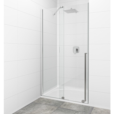 Zuhanyajtó beleértve a résprofilt is fényes krómban, a felület átlátszó üvegből készült dekor nélküli. Easy Clean felületkezeléssel, amely megkönnyíti a tisztítást, és minimalizálja a vízkőlerakodást. Tolóajtó rendszer. Bal és jobb oldali tájolás is.
