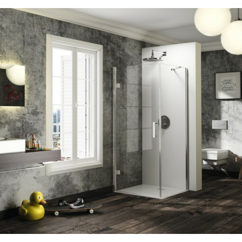 Zuhanyajtó tálca nélkül fényes krómban, a felület átlátszó üvegből készült dekor nélküli. A Hüppe Anti-Plaque technológiával - a gyártás során alkalmazott felületkezeléssel, amely megkönnyíti a tisztítást, és lehetővé teszi, hogy a víz apró cseppek formájában folyjon le. Elforgatható nyitórendszer. Bal oldali tájolás.