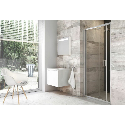 Zuhanyajtó tálca nélkül fényes krómban, a felület átlátszó üvegből készült dekor nélküli. A RAVAK AntiCalc® technológiának köszönhetően az üveg víztaszító tulajdonságokkal rendelkezik, ami azt jelenti, hogy az üveg felülete víztaszítóvá válik. Tolóajtó rendszer. Bal és jobb oldali tájolás is.