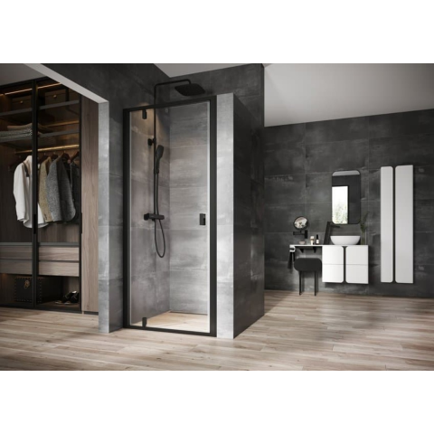 Zuhanyajtó tálca nélkül fekete színben, a felület átlátszó üvegből készült dekor nélküli. A RAVAK AntiCalc® technológiának köszönhetően az üveg víztaszító tulajdonságokkal rendelkezik, ami azt jelenti, hogy az üveg felülete víztaszítóvá válik. Elforgatható nyitórendszer. Bal és jobb oldali tájolás is.