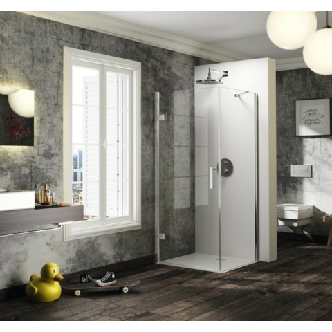 Zuhanyajtó tálca nélkül fényes krómban, a felület átlátszó üvegből készült dekor nélküli. A Hüppe Anti-Plaque technológiával - a gyártás során alkalmazott felületkezeléssel, amely megkönnyíti a tisztítást, és lehetővé teszi, hogy a víz apró cseppek formájában folyjon le. Elforgatható nyitórendszer. Jobb oldali tájolás.