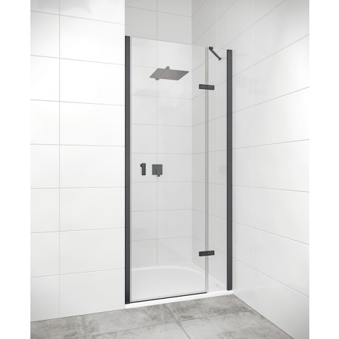 Zuhanyajtó beleértve a résprofilt is fekete színben, a felület átlátszó üvegből készült dekor nélküli. A Hüppe Anti-Plaque technológiával - a gyártás során alkalmazott felületkezeléssel, amely megkönnyíti a tisztítást, és lehetővé teszi, hogy a víz apró cseppek formájában folyjon le. Elforgatható nyitórendszer. jobb oldali tájolás.