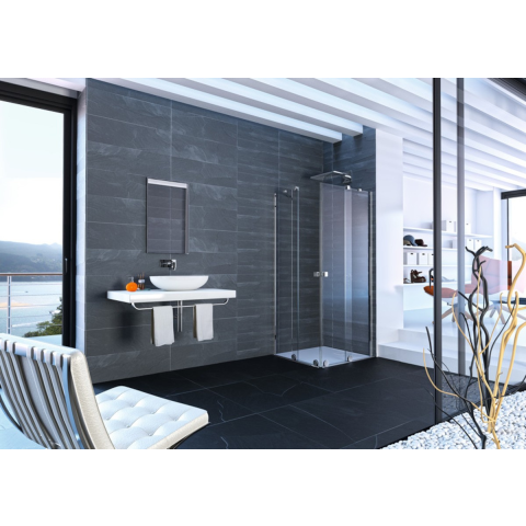 Zuhanyajtó tálca és profilszín nélkül, fényes króm színben, a töltés tiszta üvegből készült, díszítés nélkül. A termék Hüppe Anti-Plaque technológiával van ellátva - ez egy gyárilag alkalmazott felületkezelés, amely megkönnyíti a tisztítást és lehetővé teszi, hogy a víz apró cseppek formájában könnyen lefolyjon. Csúsztatható nyitású rendszer. Bal oldali tájolás. FIGYELEM! Ez csak a zuhanykabin 1/2 része, csak a másik felét kell hozzáadni a kívá