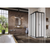 Tálca nélküli zuhanyajtó fekete profillal és átlátszatlan műanyag panellel, gyöngyház díszítéssel. Csúsztatható nyitású rendszer. Bal és jobb tájolás. FIGYELEM! Ez csak 1/2 zuhanykabin, csak a másik felét kell megvásárolni a kívánt méretben.