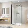 Zuhanyajtó tálca nélkül fekete színben, a felület átlátszó üvegből készült dekor nélküli. Elforgatható nyitórendszer. bal és jobb oldali tájolás is.