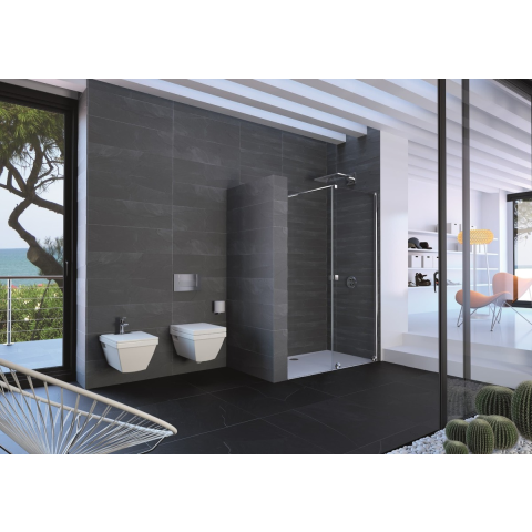 Zuhanyajtó beleértve a résprofilt is fényes krómban, a felület átlátszó üvegből készült dekor nélküli. A Hüppe Anti-Plaque technológiával - a gyártás során alkalmazott felületkezeléssel, amely megkönnyíti a tisztítást, és lehetővé teszi, hogy a víz apró cseppek formájában folyjon le. Tolóajtó rendszer. jobb oldali tájolás.