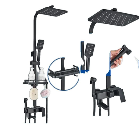 Fekete Matt Esőztető Zuhanyrendszer Tárolópolccal és Bidé Funkcióval 🚿 Ez a stílusos, matt fekete zuhanyrendszer tökéletes választás fürdőszobádba, ötvözve a modern dizájnt a praktikus funkcionalitással. Élvezd a pihentető esőztető zuhanyt, a kényelm...