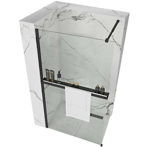Zuhanyfal Aero Black Matt 100cm + polc: Modern fürdőszoba elegancia 🚿 Ez a fekete matt zuhanyfal tökéletes választás, ha modern és stílusos fürdőszobát szeretne. A kiváló minőségű edzett üvegből készült zuhanyfal ellenáll a karcolásoknak és a sérülé...