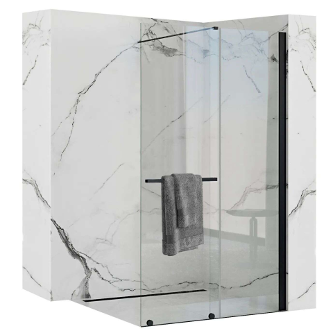 Zuhanyfal Rea Cortis 120 - Elegáns fekete zuhanykabin, könnyű tisztítással ✨ Ez a modern, elegáns kialakítású zuhanyképernyő tökéletes választás a fürdőszobájába. A fekete színű alumínium profilok és a tiszta üveg kombinációja stílusos megjelenést k...