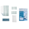 CY2100930 A függöny 100% PEVA anyagból készült, amely vízálló, penész és szakadásálló. Kis szemek és fehér függőgyűrűk vannak benne. A fehér függönyt vízszintes csíkok díszítik. A teljes zuhanyfüggöny méretei szélessége 180 cm hossza 180 cm vastagsága 0,6