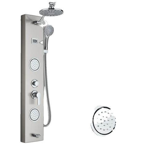 Zuhanypanel szett esőztetővel és kézi zuhannyal - Modern luxus a fürdőszobájában 🚿 Élvezze a tökéletes zuhanyélményt ezzel a falra szerelhető zuhanypanellel, amely ötvözi a modern dizájnt a praktikus funkciókkal. A szálcsiszolt nikkel felület elegáns...