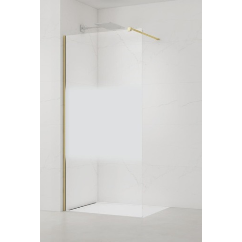Belépő zuhanyparaván profilokkal és szellőzéssel és a profilok színével sárgaréz kivitelben, a töltelék átlátszó üvegből készült, a töltet díszítése intim övvel. A termék Easy Clean felületkezeléssel van ellátva, amely megkönnyíti a tisztítást és minimalizálja a vízkő felhalmozódását. Nem nyitható - fix rendszer. Elhatározás - bal és jobb tájolás.