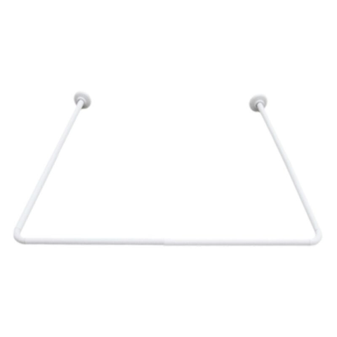 Fehér, ferde, csavarozható zuhanyfüggöny rúd. A rögzítőkészlet mellékelve van. A telepítéshez szükség van az AWD02100820 zuhanyfüggöny rúd tartóra is, amely a mennyezetre rögzíthető (külön kapható). Anyag: alumínium Termék méretei:90 cm × 2,5 cm × 90 cm