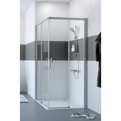 Zuhanysarok tálca nélkül , a felület átlátszó üvegből készült dekor nélküli. A Hüppe Anti-Plaque technológiával - a gyártás során alkalmazott felületkezeléssel, amely megkönnyíti a tisztítást, és lehetővé teszi, hogy a víz apró cseppek formájában folyjon le. Tolóajtó rendszer. Bal és jobb oldali tájolás is.