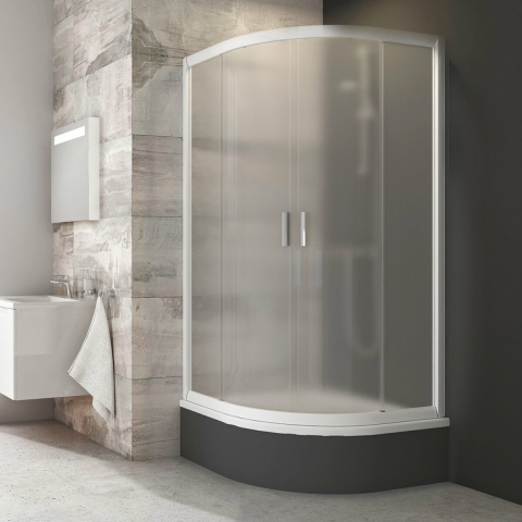 Zuhanysarok tálca nélkül fehér színben, a felület átlátszatlan üvegből készült Grape dekorral. A RAVAK AntiCalc® technológiának köszönhetően az üveg víztaszító tulajdonságokkal rendelkezik, ami azt jelenti, hogy az üveg felülete víztaszítóvá válik. Tolóajtó rendszer. Bal és jobb oldali tájolás is.
