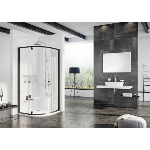 Zuhanysarok tálca nélkül fekete matt színben, a felület átlátszó üvegből készült dekor nélküli. A RAVAK AntiCalc® technológiának köszönhetően az üveg víztaszító tulajdonságokkal rendelkezik, ami azt jelenti, hogy az üveg felülete víztaszítóvá válik. Elforgatható nyitórendszer. Bal és jobb oldali tájolás is.