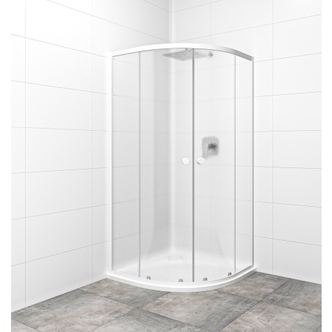 Zuhanysarok tálca nélkül fehér színben, a felület átlátszatlan üvegből készült. Tolóajtó rendszer. Bal és jobb oldali tájolás is.