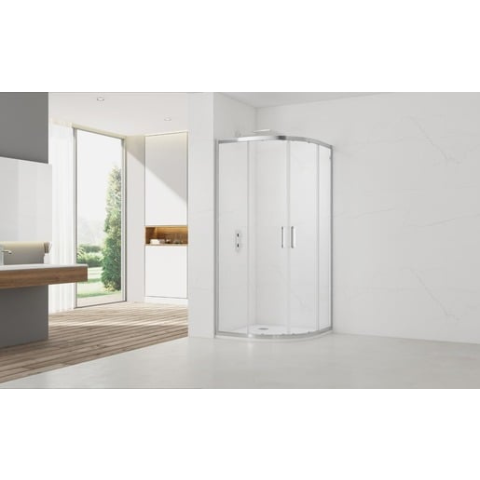 Zuhanysarok tálcával fényes krómban, a felület átlátszó üvegből készült dekor nélküli. Easy Clean felületkezeléssel, amely megkönnyíti a tisztítást, és minimalizálja a vízkőlerakodást. Tolóajtó rendszer. bal és jobb oldali tájolás is.