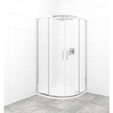 Zuhanysarok tálcával fényes krómban, a felület átlátszó üvegből készült dekor nélküli. Easy Clean felületkezeléssel, amely megkönnyíti a tisztítást, és minimalizálja a vízkőlerakodást. Tolóajtó rendszer. bal és jobb oldali tájolás is.