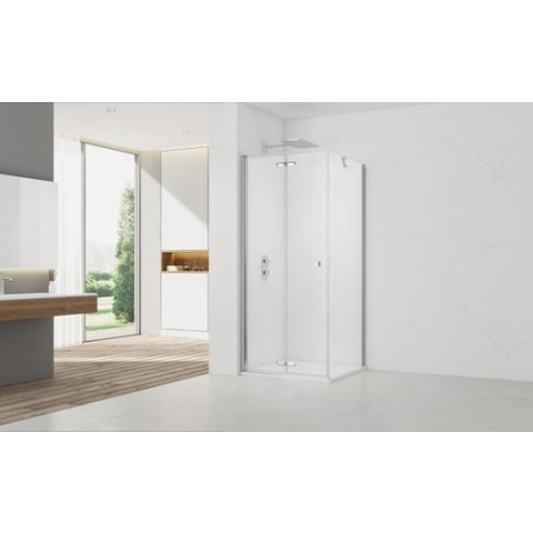 Zuhanysarok tálcával fényes krómban, a felület átlátszó üvegből készült dekor nélküli. Easy Clean felületkezeléssel, amely megkönnyíti a tisztítást, és minimalizálja a vízkőlerakodást. Tolóajtó rendszer. bal és jobb oldali tájolás is.