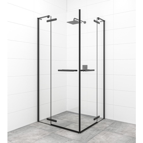Zuhanysarok tálca nélkül fekete színben, a felület átlátszó üvegből készült dekor nélküli. Easy Clean felületkezeléssel, amely megkönnyíti a tisztítást, és minimalizálja a vízkőlerakodást. Elforgatható nyitórendszer. bal és jobb oldali tájolás is.