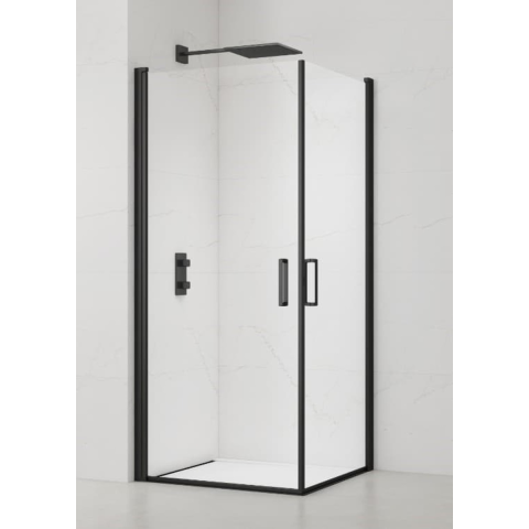 Zuhanysarok tálca nélkül fekete matt színben, a felület átlátszó üvegből készült dekor nélküli. Easy Clean felületkezeléssel, amely megkönnyíti a tisztítást, és minimalizálja a vízkőlerakodást. Forgónyitó rendszer bal és jobb oldali tájolás is.