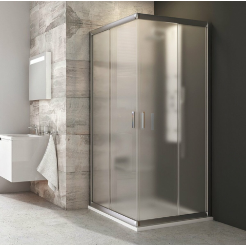 Zuhanysarok tálca nélkül matt króm színben, a felület átlátszatlan üvegből készült Grape dekorral. A RAVAK AntiCalc® technológiának köszönhetően az üveg víztaszító tulajdonságokkal rendelkezik, ami azt jelenti, hogy az üveg felülete víztaszítóvá válik. Tolóajtó rendszer. Bal és jobb oldali tájolás is.