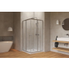 Zuhanysarok tálcával fényes krómban, a felület átlátszó üvegből készült dekor nélküli. Tolóajtó rendszer. bal és jobb oldali tájolás is.
