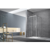 Zuhanysarok fogantyú és tálca nélkül fényes krómban, a felület átlátszó üvegből készült dekor nélküli. Easy Clean felületkezeléssel, amely megkönnyíti a tisztítást, és minimalizálja a vízkőlerakodást. Tolóajtó rendszer. Bal és jobb oldali tájolás is.