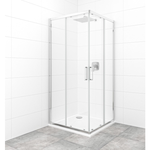 Zuhanysarok tálcával fényes krómban, a felület átlátszó üvegből készült dekor nélküli. Easy Clean felületkezeléssel, amely megkönnyíti a tisztítást, és minimalizálja a vízkőlerakodást. Tolóajtó rendszer. bal és jobb oldali tájolás is.