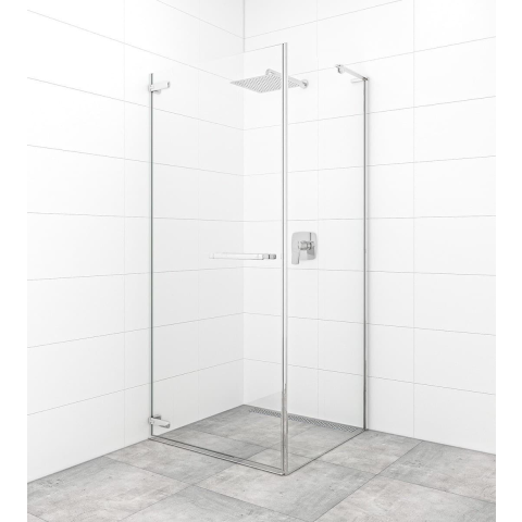 Zuhanysarok tálca nélkül fényes krómban, a felület átlátszó üvegből készült dekor nélküli. Easy Clean felületkezeléssel, amely megkönnyíti a tisztítást, és minimalizálja a vízkőlerakodást. Elforgatható nyitórendszer. bal és jobb oldali tájolás is.