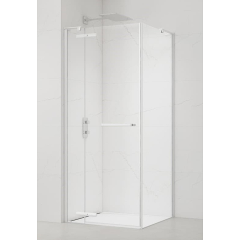 Zuhanykabin oldalsó paravánnal együtt fehér, a kitöltés tiszta üvegből készült, díszítés nélkül. A termék Easy Clean kivitelű, amely megkönnyíti a tisztítást és minimalizálja a vízkőlerakódást. Csuklós nyitórendszer. Megjelölés - bal és jobb tájolás.