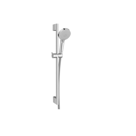 Zuhanyszett csaptelep nélkül 2 funkcióval. A csaptelep térfogatárama 9,7 liter / perc.
