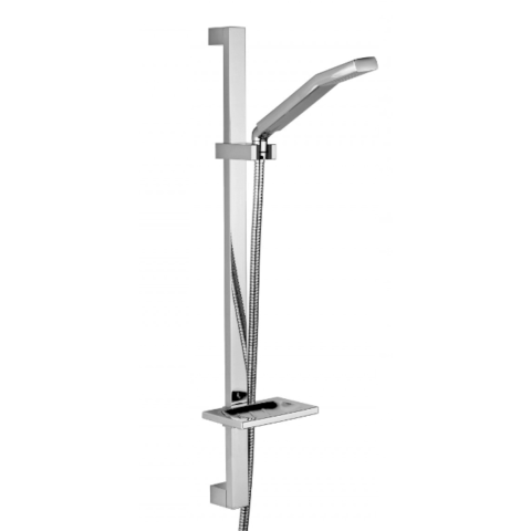 Zuhanykészlet szappantartóval, 1 funkcióval, 68,5 cm hosszúságú. Szögletes kialakítású. Anyaga fém.