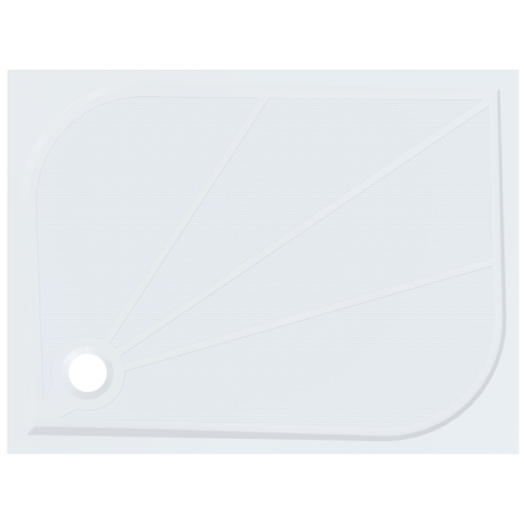 Fehér színű, öntött márványból készült zuhanytálca. Méretek: szélesség 100 cm, mélység 90 cm és magasság 3 cm. A csomag tartalmazza a lábakat. A kád teherbírása 120 kg. Csúszásgátló réteg. A kád lábakon, panellel, a padlóra vagy teljesen a padlóba süllyesztve is felszerelhető.