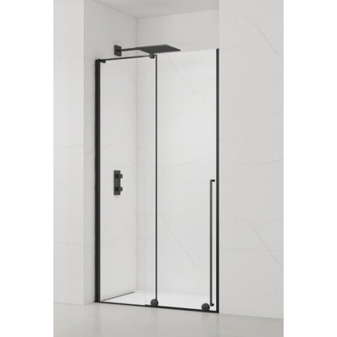 Zuhanyajtó nikkelprofillal együtt fekete színben, a kitöltés tiszta üvegből készült, díszítés nélkül. A termék Easy Clean kivitelű a könnyebb tisztítás és a vízkőlerakódás minimalizálása érdekében. Csúsztatható nyitású rendszer. Megjelölés - bal és jobb tájolás.