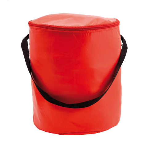 PVC anyagból készült, kör alakú hűtőtáska hord füllel.