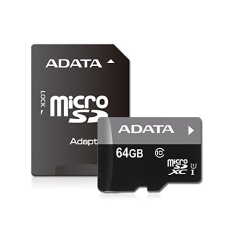 microSDXC , 64GB, Adapterrel, Class 10, Read: 50MB/s, Write: 10MB/s