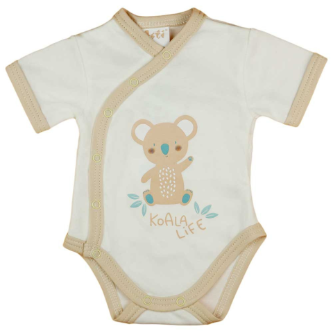 Varázsolj egy darab ausztrál varázslatot a babád szekrényébe ezzel a kedves rövid ujjú bodyllal! A játékos koalás minta biztosan elmosolyog a kis arcot, míg a 100% pamut anyag puha és légáteresztő viselet garantál. Az előoldali praktikus patentos zárás me