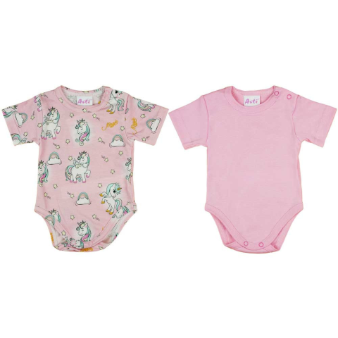 Kislányod számára ideális választás ez a rövid ujjú baba body szett. Két darab vállon patentos, vékony pamutból készült bodyból áll, melyek kellemes, puha viseletet biztosítanak. A vidám mintázatok igazi cukiságot adnak a kisebbneknek.